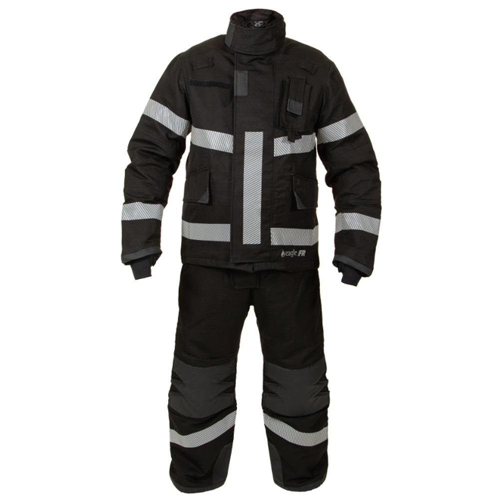 Lightweight high-visibility fire suit jacket with reflective chevrons, ergonomic padding, and smart storage—built for safety, comfort, and performance.